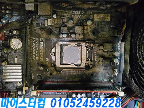 CPU 쿨러를 분리해도 메인보드에 워낙 많은 기름때와 각종 이물질, 먼지 등이 도포되듯이 오염되었습니다.